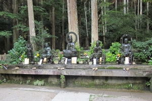 女人堂と五体(不動明王 聖宝(開祖)、 弥勒菩薩、 役行者、 地蔵菩薩)の前で手を合わせたら入山開始です。