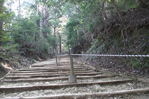 とにかく、木や石の階段が続きます。右に曲がり左に曲がりながら階段を登っていきます。